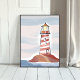 Röd och vit fyr | Strand Hav Akvarell Poster