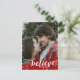 Snyggt och upplyftning är dessa helgdag vykort ett UNDERBART sätt att skicka lite kärlek och hedra julsäsongen. Med vita stjärnor och snö runt en fotomall med vit skripttext "tro" över en röd vattenfärg som målats stänk på framsidan. Ytterligare vit text är anpassade. Baksidan har samma rödmålade vattenfärg stänk med stjärnor och bål som framsidan med röd "tro". Lycklig Helgdag och God jul!