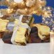 Röd och vit Hjort nära en skogsdammdammskena Presentpapper