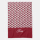 Röd och vit houndstooth mönster monogram kökshandduk