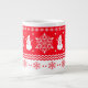 Juldesign med vit snöflingor, snögubbar, stars och stripes mot röd bakgrund.