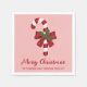 Desteis ursprungliga illustration av en röd och vit strimlad jul candy cane behandlar dekorerad med en röd båge och en julklapp/en gemensam hollfabrik. Bakgrunden till färg är rosa. Det finns också två anpassningsbara textområden.