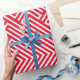 Få dina presenter att framstå med denna pappra inslagning, med ett vitt och rött geometriskt mönster. Du kan enkelt ändra bakgrunden färg om du vill.
