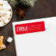Röd och vit returadress för julkort etikett