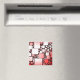 Sätt ihop en massa fyrkanter och vad får du? Det här är vad du får. Röda och vita fyrkanter omgivna av en svart bakgrund.