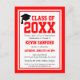 Detta vykort för inbjudan till Studentfest i Röda och vita klass är ett underbart sätt att fira högskolan eller högskolan student. Anpassa detta med uppgifter om namn, skola, år och party. Inbjudan har fet typografi i rött färg med rött och vitt gräns.