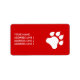 Etiketten har en silhuett med vit färg på röd bakgrund färg. Bredvid tass finns det ett textområde för anpassade för namn och adress. Den röda bakgrunden färg kan ändras till vilket annat färg som helst under anpassning.