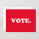 Rösta rött och vitt modernt typografiskt vykort. Vit text på röd bakgrund.