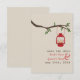 Ett utomhus bröllop spara datum med ett vildmarks-/campingtema med en illustration av en röd oljelampa som hänger från träd gren med grönt löv. Anpassa texten med din information.