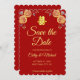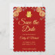 Röd orange blommigt Kinesisk dubbla bröllop lycka Spara Datumet