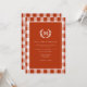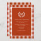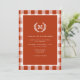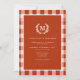 Röd-Orange Gingham Monogram Vapensköld QR Code Call for Details and OSA. Ge din stora dag en pulserande charm med den här klassiska ginghambröllopsinbjudan, en del av Eleganten Rustic Gingham Collection. Den här designen har en fetstilt gingham mönster-bakgrund i ditt val av sex gigantiska färg, en monogram vapensköld och elegant-serif-typografi, och blandar rustik charm med tidlös stil. Perfekt för land, ladugårdar eller trädgårdsbröllop, den här inbjudan anger tonen för ett glatt och avslappnat firande. Koppla den med vår matchande gingham tallrikar, blöjor, märkre, välkomsttecken och mer till en sammanhängande och färglös bröllop-svit.