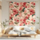 Ett livligt rött blommönster med vattenfärg i hibiscus på mjuk rosa.
