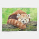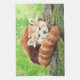 Vattentärsmålning av en röd panda på en gammal träd-trunk.