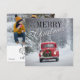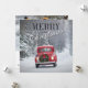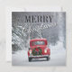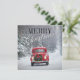 Röd pickup som kör i snö julkort