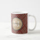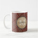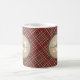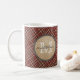 Röd plädbakgrundsmonogram kaffemugg