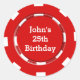 Röd pokerchip casinofest sticker etikett. Anpassa med valfri text.