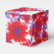 Ljusfläckiga stil-poppies i ljust rött med lila löv på vit bakgrund, behandla tacksamhetsboxar. Idealiskt för bröllop, firande och födelsedagstack. Designad av Sarah Trett.