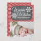 Lägg till ditt favorit familjefoto eller bebis första högtid eller baby pojke eller baby flicka jul bild till detta söta, moderna och vackra vinter tema jul fotokort med två snöflingor på en svart tavla bakgrund och röd och vit prickig mönster. Det står Varmaste önskningar och det kan anpassas med ditt familjenamn, år och individuella familjemedlemmar namn. Konstverket © Chrissy H. Studios, LLC. Alla rättigheter förbehållna.