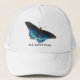 Hattdesignen presenterar en fotografera av en slå Röd-prickig purpurfärgad fjäril.