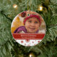 Den god julmormodern och morfadern smyckar anpassade med ditt egna familjfoto i elegantt röd och vitsnöflingormönster. En stilfull julgåva för mormor och morfar denna julhelg.