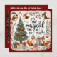 Personlig, mysig, julinspirerad design med frasen "Det är den magiska tiden på året!" omgiven av festliga illustrationer, inklusive rävar, rödhakar, ett dekorerat julgran, röda bär och säsongsbetonade accenter. Ändra fotot på baksidan och texten och gör det till ditt eget.