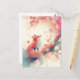 Det här förtrollande vykortet visar en graciös räv som sitter fridfullt under de vidsträckta grenarna på ett körsbärsträd i full blom. Konsten är gjord i en drömlik akvarellstil med en mjuk och romantisk palett i rosarött, korall och elfenben. Ömtåliga blomblad driver genom luften som snö och skapar en stämning av tyst naturlig förundran. Räven blickar uppåt med ett lugnt uttryck och den livfulla orange pälsen ger en vacker kontrast till den eteriska pastellbakgrunden. Det här vykortet är ett perfekt val för att skicka en vårhälsning, ett "tankar på dig"-meddelande eller en fredlig födelsedagsönskan till alla som älskar vilda djur.