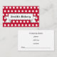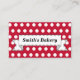 En klassisk banderdesign pryder detta röda prickiga visitkort. Anpassa detta visitkort för att passa dina behov. Ändra informationen, bakgrundsfärgen, etc... Designen är från originalkonst. Använd detta professionella visitkort för en butik, bageri, ändringar, kafé, chokladtillverkare, gourmetmat, kock, cateringtjänst, catering, florist, kosmetolog, bokningar, frisör, salong, spa, nagelsalong, heminredning, inredningsdesign, accessoarer, stickning, sömnad, antika föremål, etc...