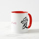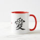 Kinesiska symboler för ord på tea- & kaffeRingermuggar, till koordinaten med din hem- och kontorsdekor. Det kinesiska symbolet för kärlek skrivs ut med din favorit- koordinerande engelska uttryck för färg och kinesiska symbolord för svart. Välj 11oz. eller 15 uns. Ringermuggar och kinesiska symbolbetydelser för visning på muggar som ett uttryck av dig! Kinesiska ordsymboler i konst för hem- och kontorsdekor gör perfekta gåvor för familj, vänner och medarbetare.