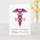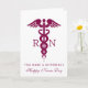 Glad Sjuksköterskedagen, du gör skillnad. Ett gratulationskort med en stilren röd kaducé-symbol med bokstäverna R N på vardera sidan. Enkel minimalistisk design. Personligt meddelande inuti.