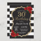 Röd ros 30-års födelsedagsinbjudan guldglitter. Svart och guld födelsedagsfest inbjudan. Guldglitter. Svart och vita ränder. Krit tavla. Utskrivbar digital. För ytterligare anpassning, vänligen klicka på "Anpassa"-knappen och använd vårt designverktyg för att ändra denna mall.