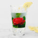 Morgon röd ros täckte med droppar av morgondagg. Röd ros blomstrar i ro trädgård. Florfotografi av en röd ros-blomma i fullt-blomman. Röd ros symboliserar kärlek, passion, romantik, skönhet, skönhet, elegans, lyx och sensualitet.