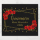 Guld och svart Quinceañera med levande traditionell röd ros och klassisk manustypografi