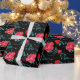 Röd ros Bloom på Pappra Svart figursättning Presentpapper