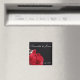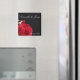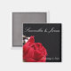 En attraktiv magnet för bröllopsdag med ett skarpt röd ros på en svart baksida i tuxedo tillsammans med namn och datum.