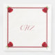 Bröllop napkins med röd ros i hörnet och monogram i mitten. Designen växlar lätt mellan alla dockstorlekar och stilar.