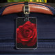 Identifiera ditt bagage omedelbart med den här unika bagagetaggen! Röd ros - Ett levande röd ros (rosa paul's scarlet klättrar) fotograferat mot en svart bakgrund i jet. © Alan Harman Photography 2013. Alla Höger reserverade. www.alanharmanphotography.com 100418 bagagemärke