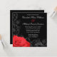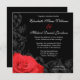 Vackra blommigten var bröllopsinbjudan. Med ett klassiskt röd ros med elegant blomstrar virvelströmmarna mot svart bakgrund. Färgämnen efter © Mujka Design