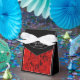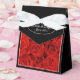 Den här bröllopsaffären visas i svart med en vit bandbåge och en röd ros på framsidan. Visas med exempel på namn och datum. Anpassa det här objektet och ändra namn och datum till ditt.