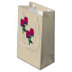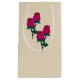 Utformningen visar två par röd ros på fram- och baksidan av presentsäcken. De är digitalt ritade och färgad och placeras på en ljus rosa bakgrund. Du kan enkelt ändra färg i bakgrunden genom att klicka på anpassningsknappen.