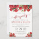 Elegant vattenfärgen röd ros glatt efter party bröllopsinbjudan.