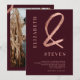 Modern chic ro guld ampersand namn fotot bröllop på redigerbar röd burgundi. En enkel, modern och minimalistisk bröllopsinbjudan.