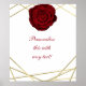 Röd ros & Guld Linjer Blommigt Bröllopsfest Banner Poster