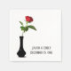 Ett enda röd ros i ett svart vas på vit bakgrund för en bröllop-årsdag eller ett nytt mottagningsbevis.