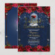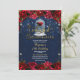 Röd Ros Marinblå Guld Förtrollad Quinceañera 15 Inbjudningar