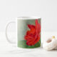En vit mugg, dekorerad med röd ros från en originalfärg av Olje Pastel Painting.