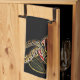 En Boll Python Snake korkade runt en rödblomma och guld-blommans Ro handduk för Snake älskare. Underbar naturfotograf av en verklig orm som är böjd runt en röd ros handduk för köksdekan. Unik gåva till husuppvärmning. Vibrant på svart bakgrund som du kan byta till kostym på ditt kökstema eller din smak.