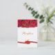 Bouquet av röd ros och gått med affärskortet för bröllopsmottagning.