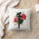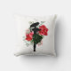 Röd ros skål i detta dekorativ kudde med en mode-silhuett som är utformad av en kvinna i centrum av dem som bär en stor hatt och bakkjolar som har vinstockar av blommar grönt.
