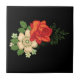 Röd ros och tusenskönor svart bakgrund kakelplatta