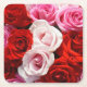 En uppsättning underlägg med ett foto av ett kluster av rött, rosa och vit ros. Välj mellan olika former och inte bara fyrkantiga!